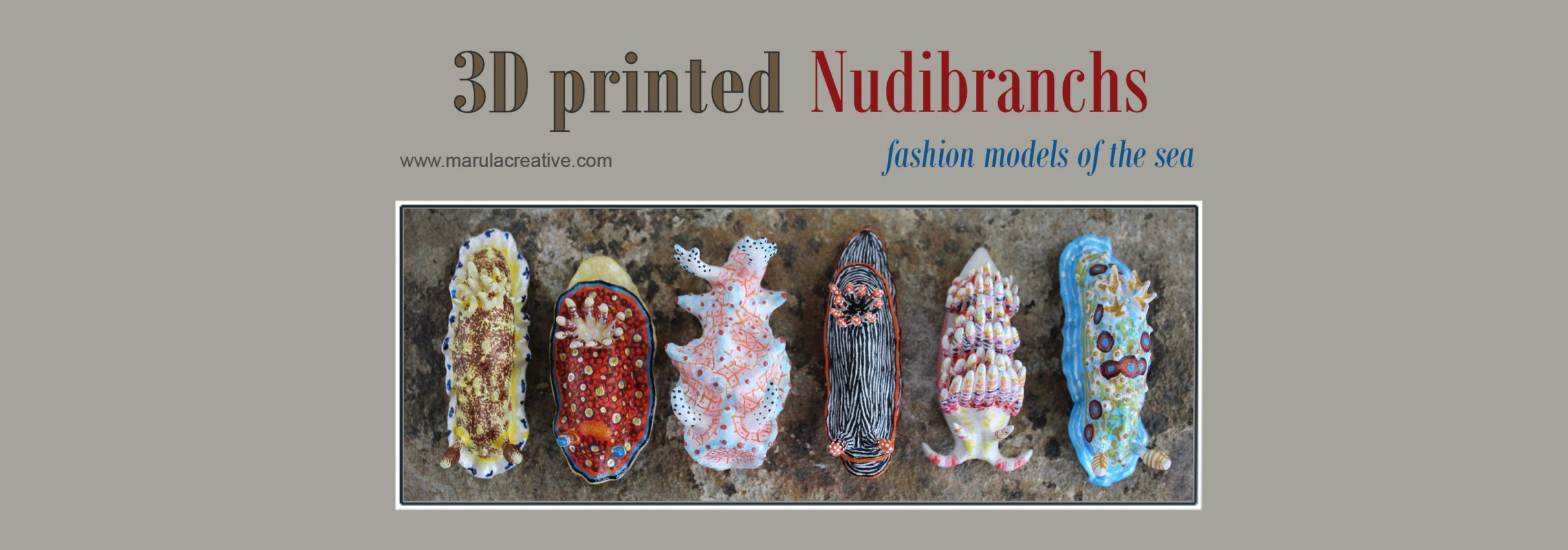 • 3D printed nudibranch models to be hand painted – sculptures / desk toys (white or coloured plastic): https://www.marulacreative.com/nudibranchs/